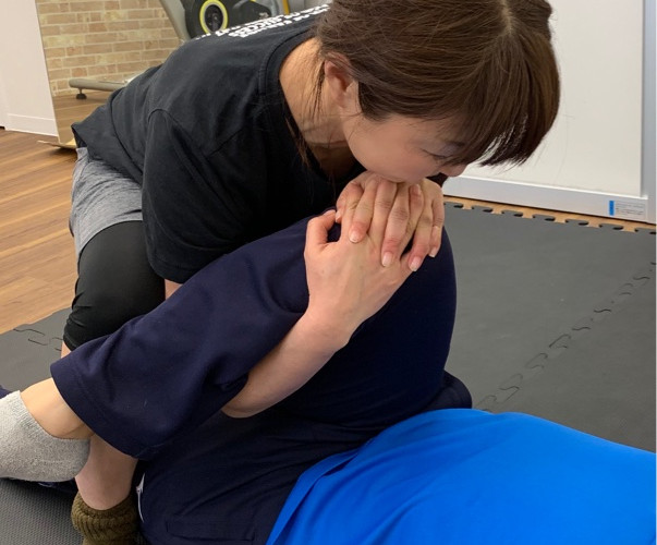 BREATHでは股関節の詰まった感じがある方は、はめ込みをします。